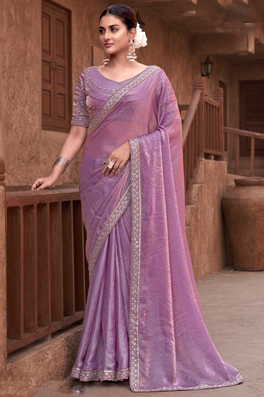 Purple Gradient Satin Silk Artisanal Hand Embroidered Work Saree