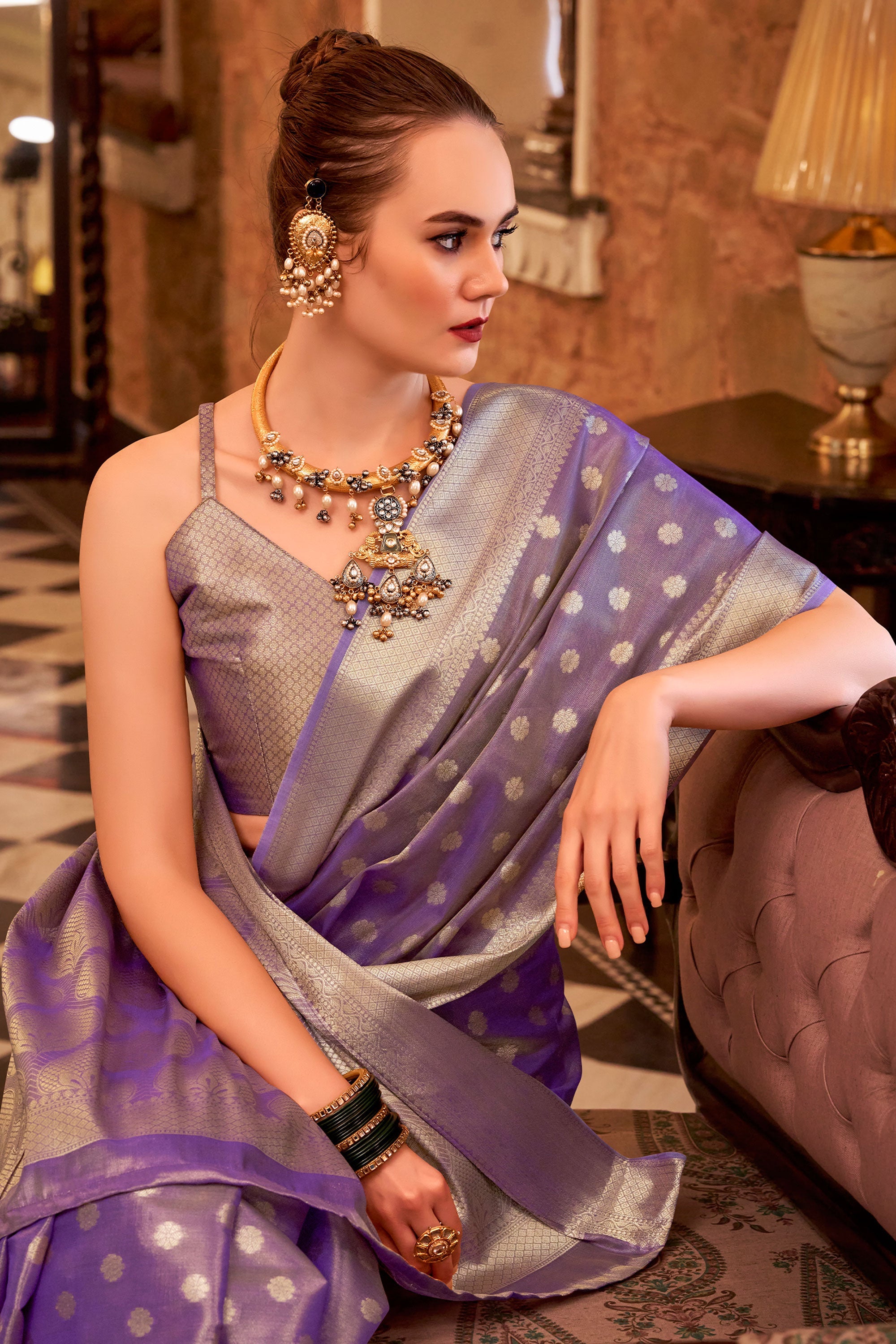 Purple Sangeet Wear Tissue Silk Handloom Zari Weaving Saree