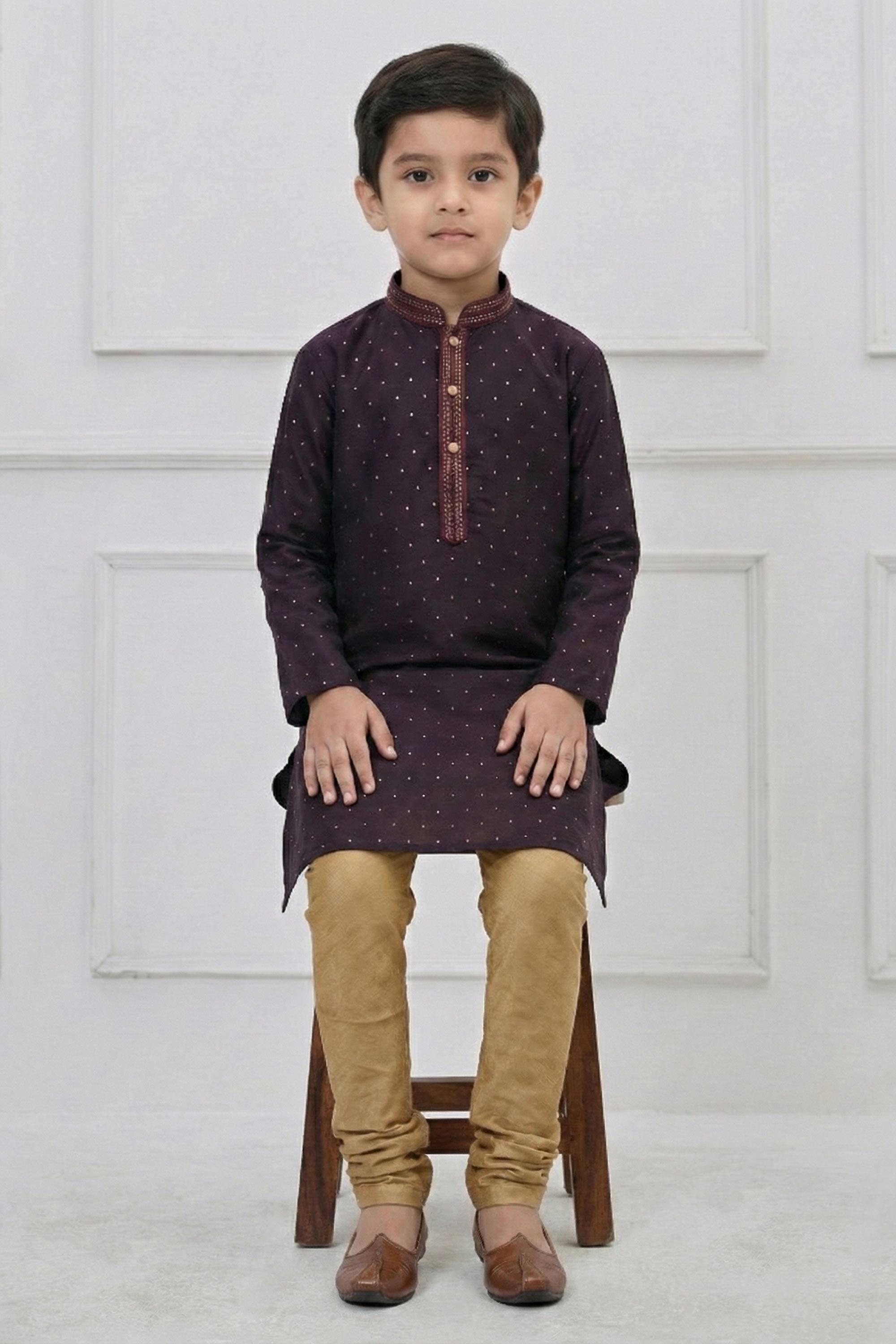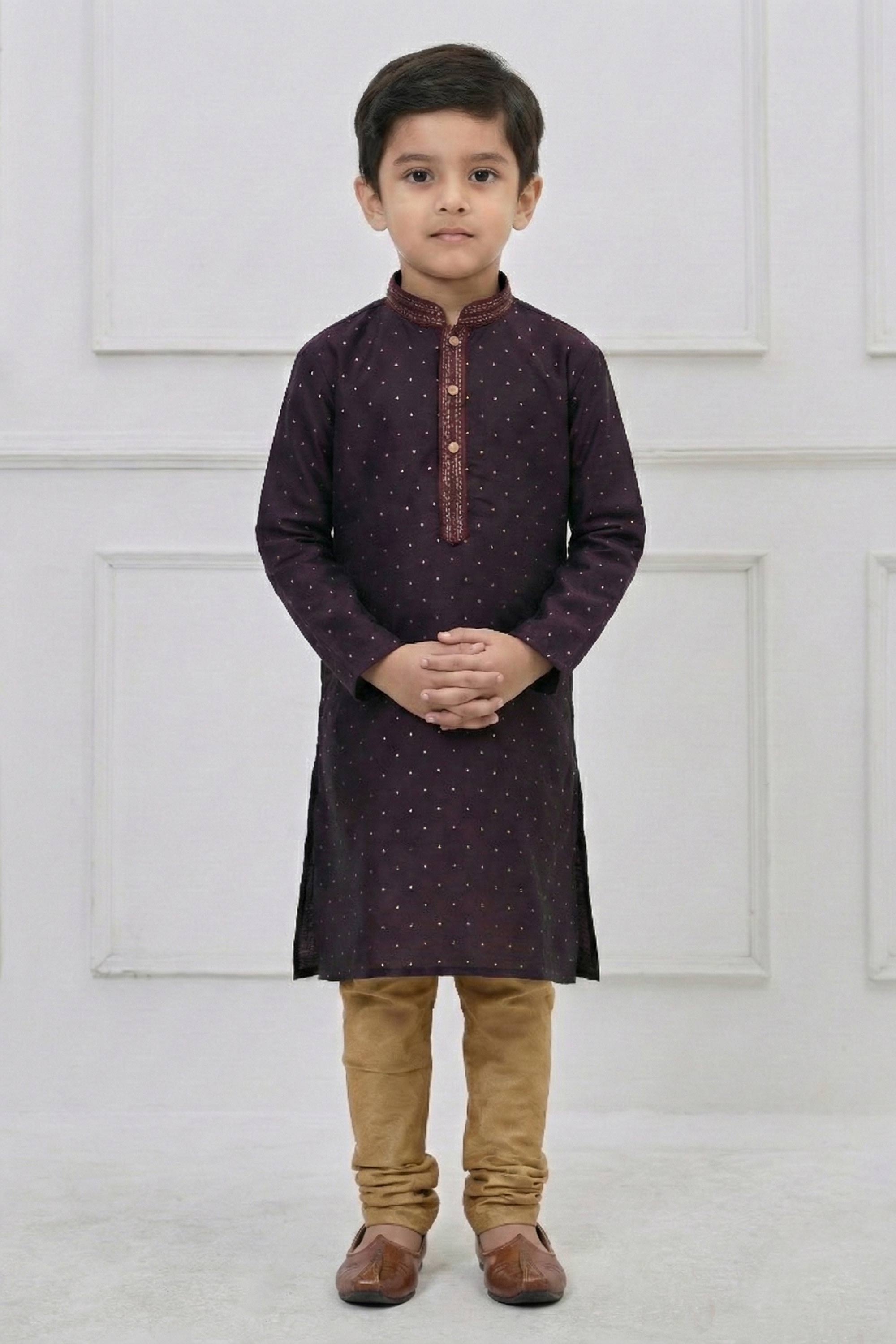 The rich color tone enhances the overall festive charm of this boys wear outfit, making it an ideal choice for weddings and traditional events. Pair it with ethnic footwear to complete the royal look and make your child stand out effortlessly. Note: Due to digital photography, slight color variations may occur.
