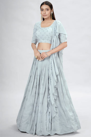 Radiant Grey Color Georgette Fabric Sequins Work Lehenga