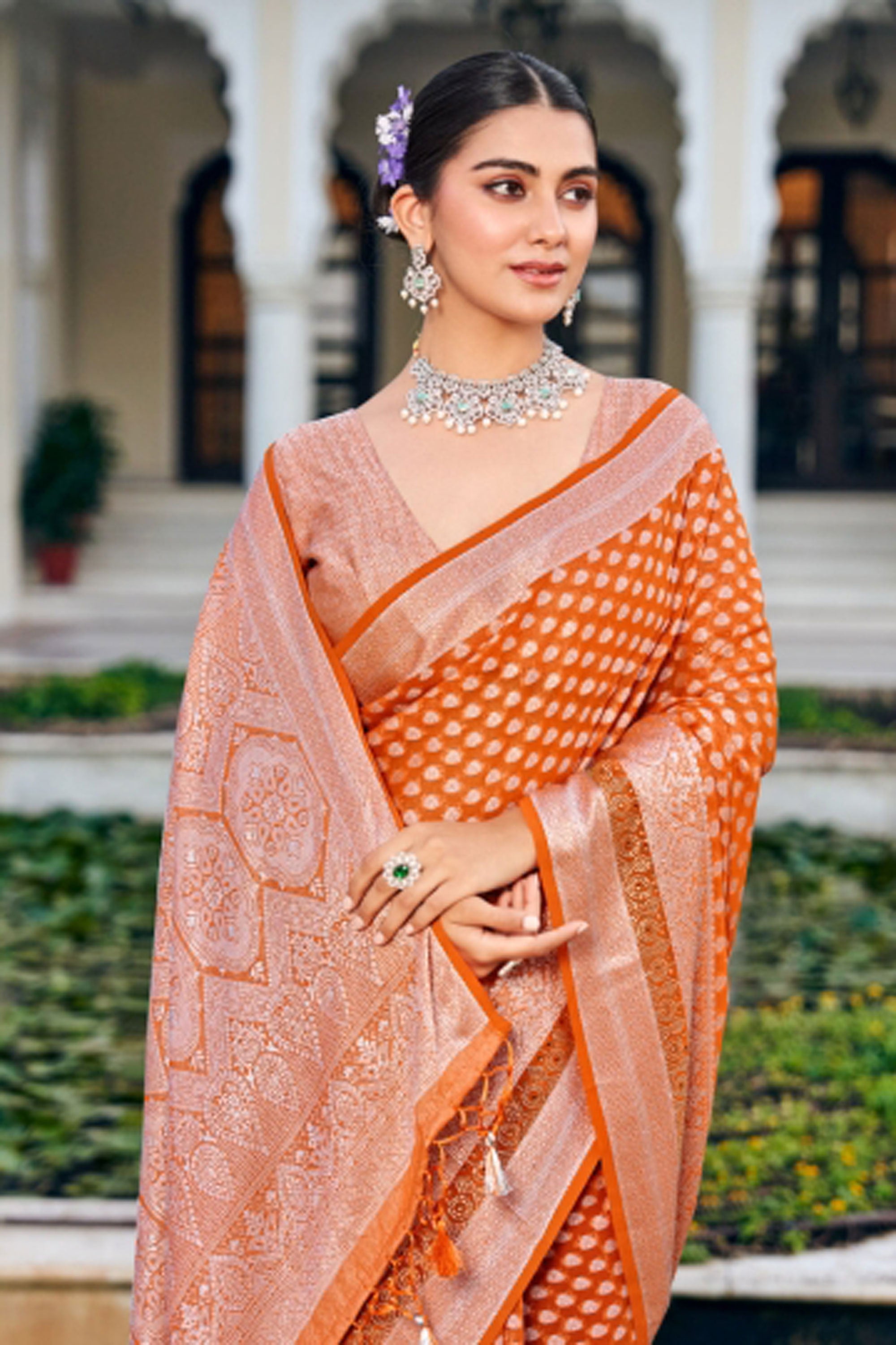Radiant Orange Color Festival Wear Weaving Work Georgette Saree