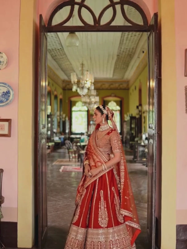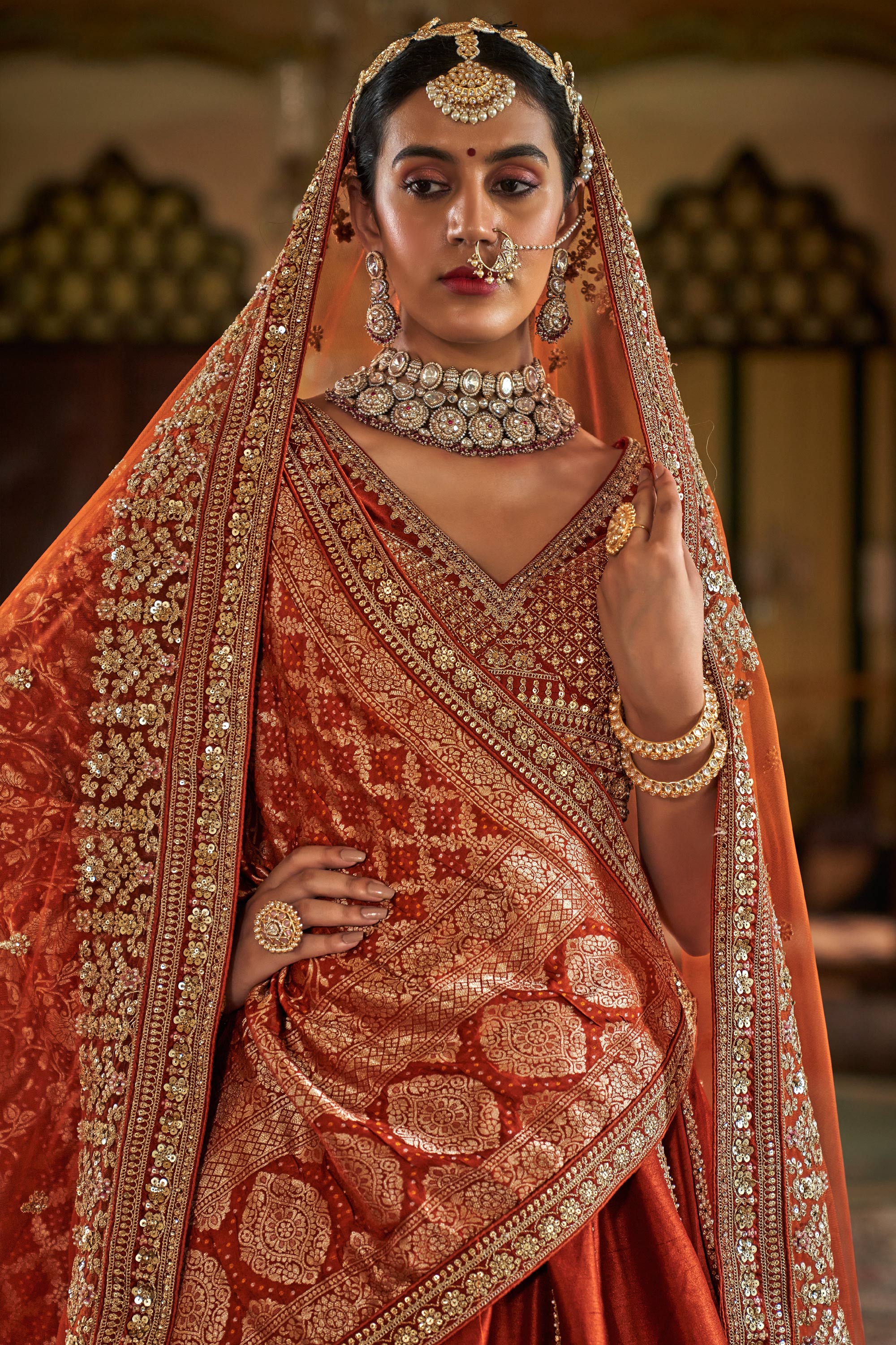 Look stunningly beautiful on your wedding day with this expertly crafted heavy embroidered silk bridal lehenga choli. The smooth and luxurious silk fabric combined with detailed embroidery makes it a gorgeous choice for brides seeking a sophisticated outfit. This timeless attire features vibrant hues and thoughtful patterns that effortlessly capture attention. It is lightweight yet eye-catching, ensuring both comfort and a grand look for the bride. Whether for traditional ceremonies or extravagant receptions, this lehenga choli guarantees elegance from every angle. Complete your look with sparkling jewelry and makeup to make every moment magical.