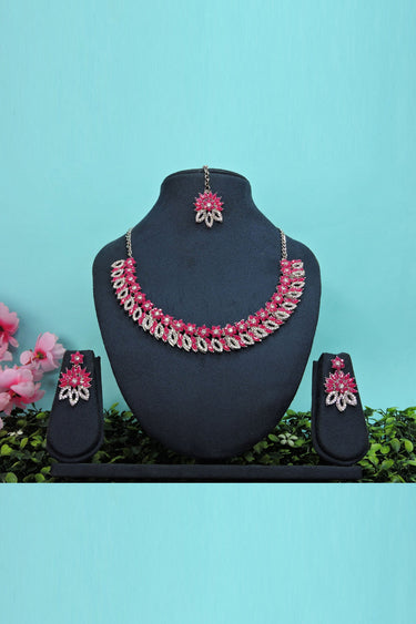 Rani Color Alloy Material Ravishing Necklace Set Earrings And Mang Tikka For Women