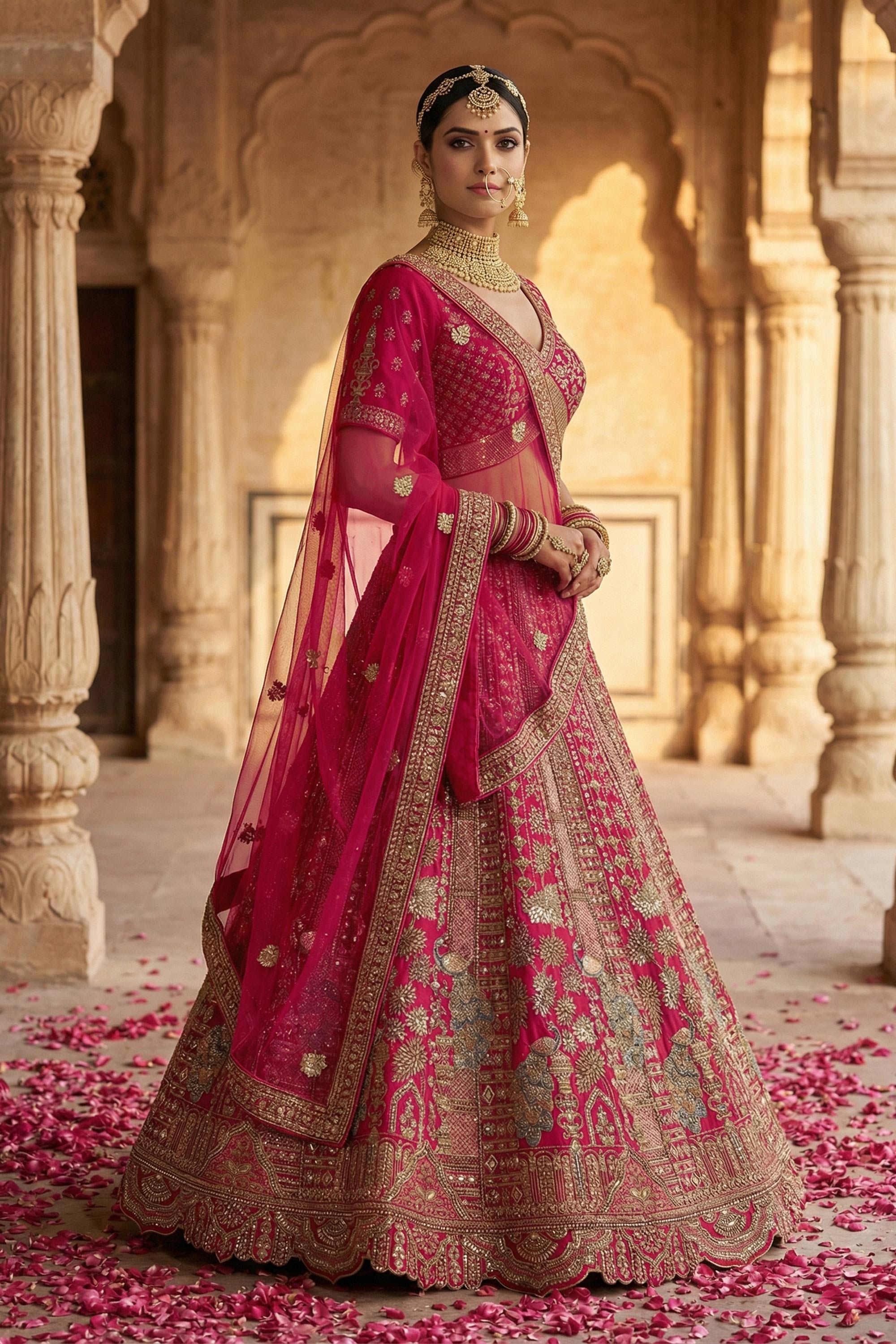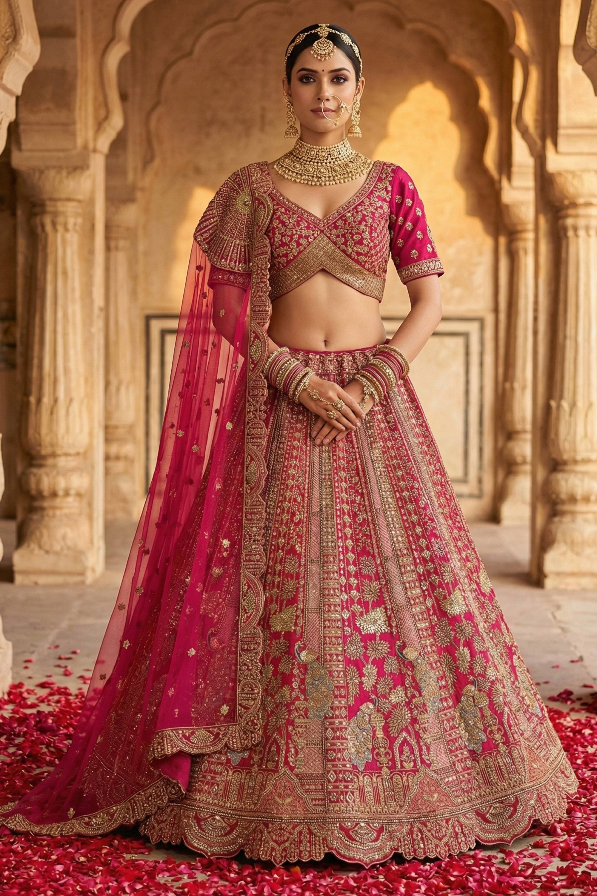Make your wedding day truly unforgettable with this exquisite Bridal Lehenga Choli, designed to reflect timeless elegance and royal charm. Crafted from luxurious silk fabric, the lehenga showcases a rich and graceful drape that enhances the beauty of traditional bridal wear. Adorned with heavy embroidery, this ensemble radiates opulence and grandeur, perfectly suited for wedding celebrations. The rich color adds depth and sophistication, creating a regal bridal look. Note: Due to digital photography, slight color variations may occur.