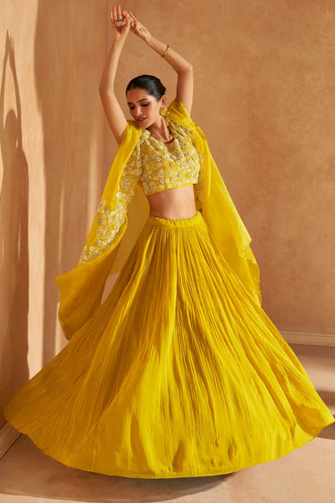 Readymade Chinon Silk Ravishing Lehenga Choli With Jacket In Yellow Color