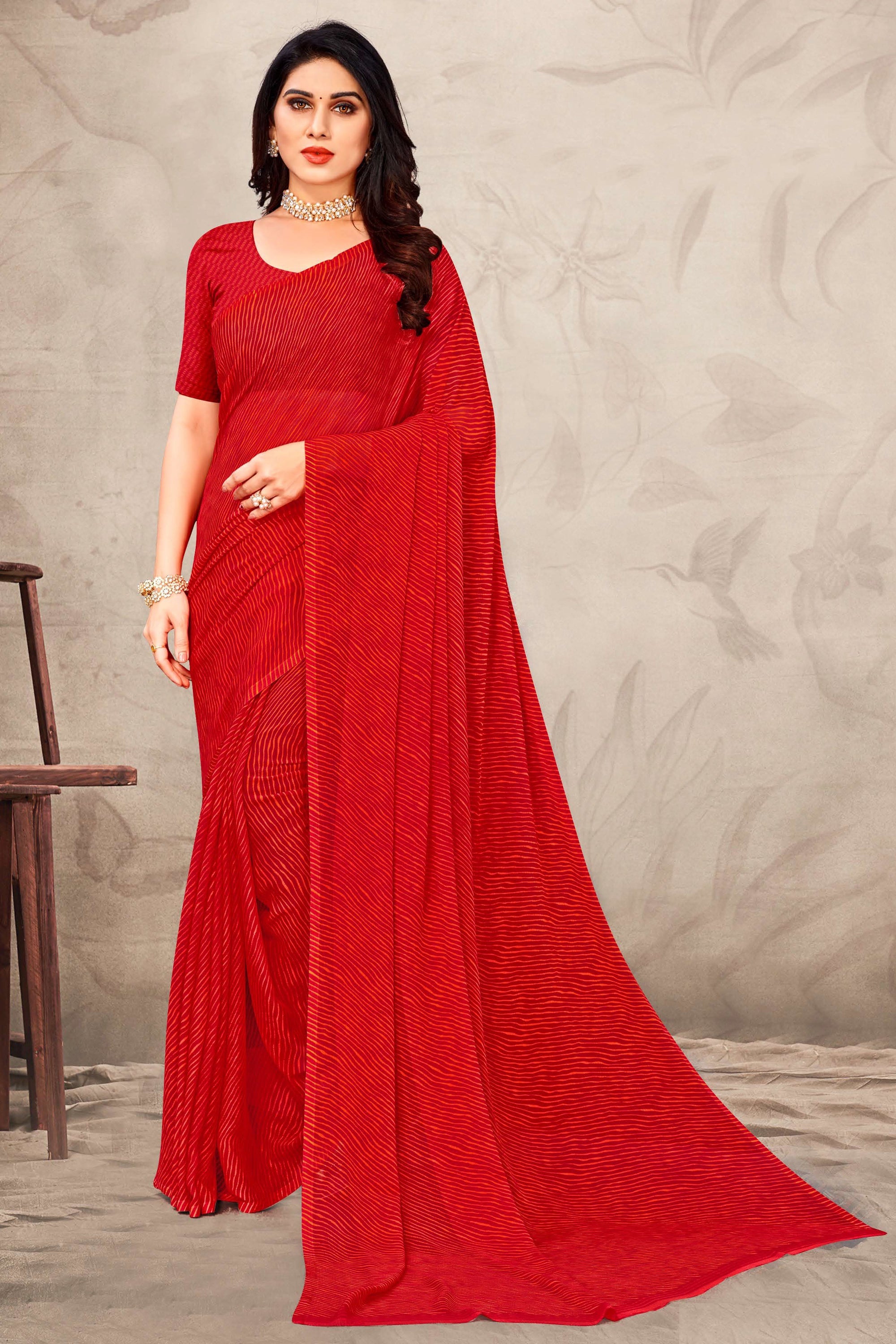 Red Color Chiffon Fabric Printed Casual Wear Saree