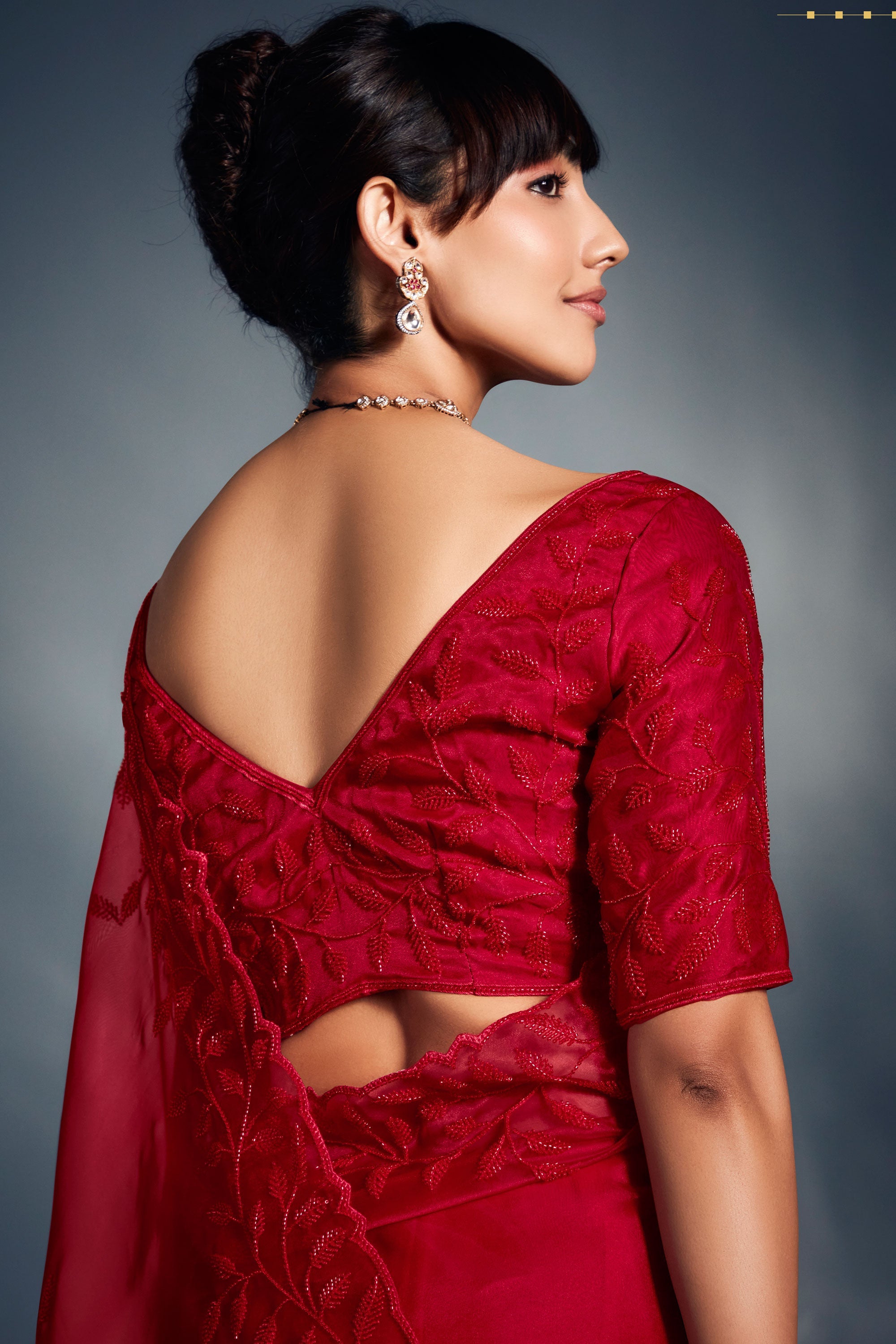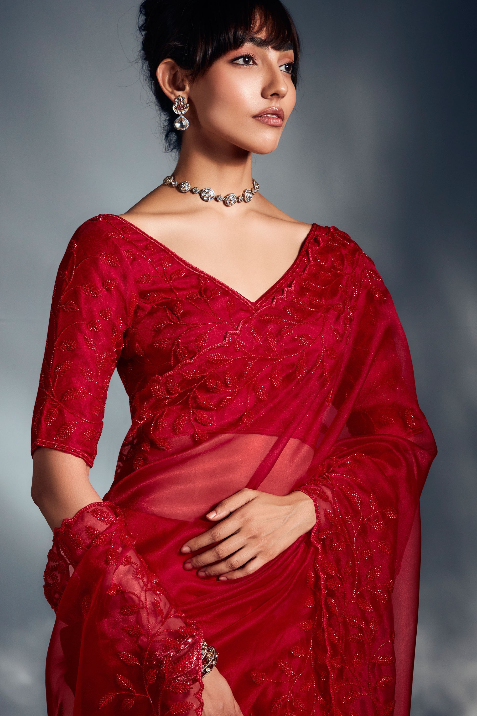 Red Color Fancy Heavy Work On Organza Fabric Stunning Saree