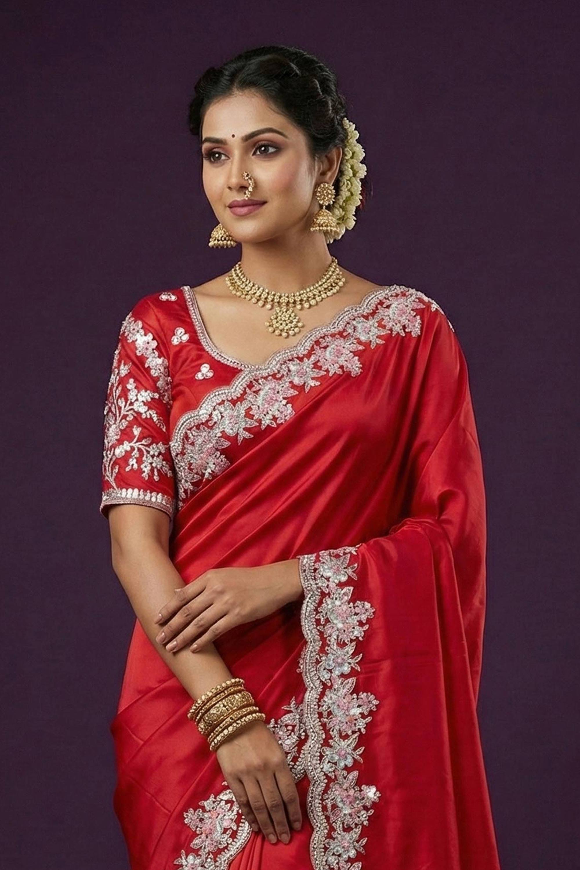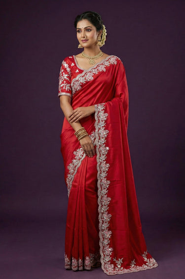 Red Festive Wear Satin Silk Embroidered Saree