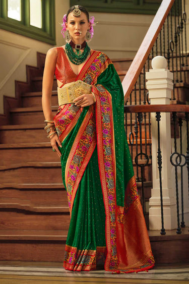 Regal Jacquard Work On Banarasi Silk Saree In Dark Green Color