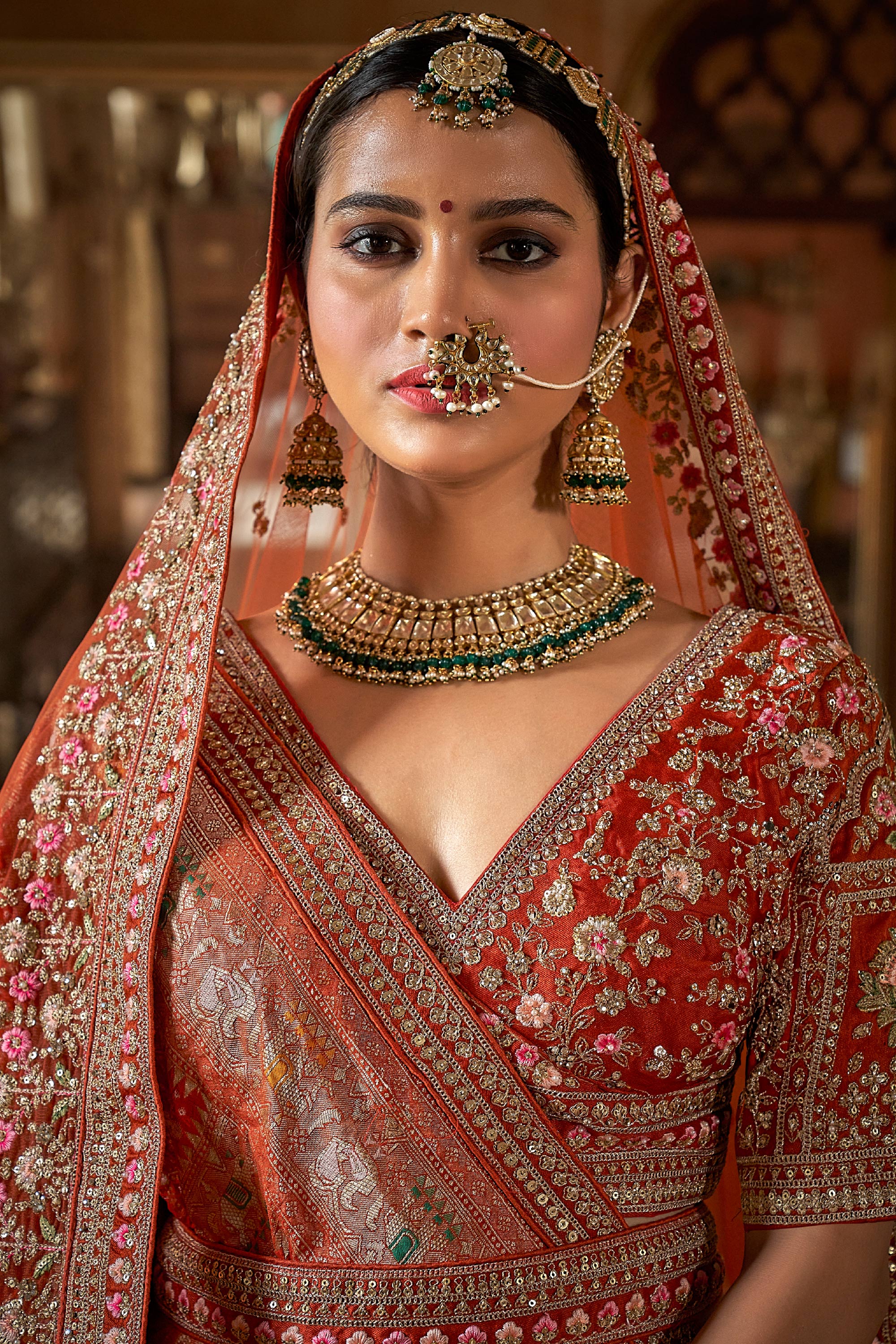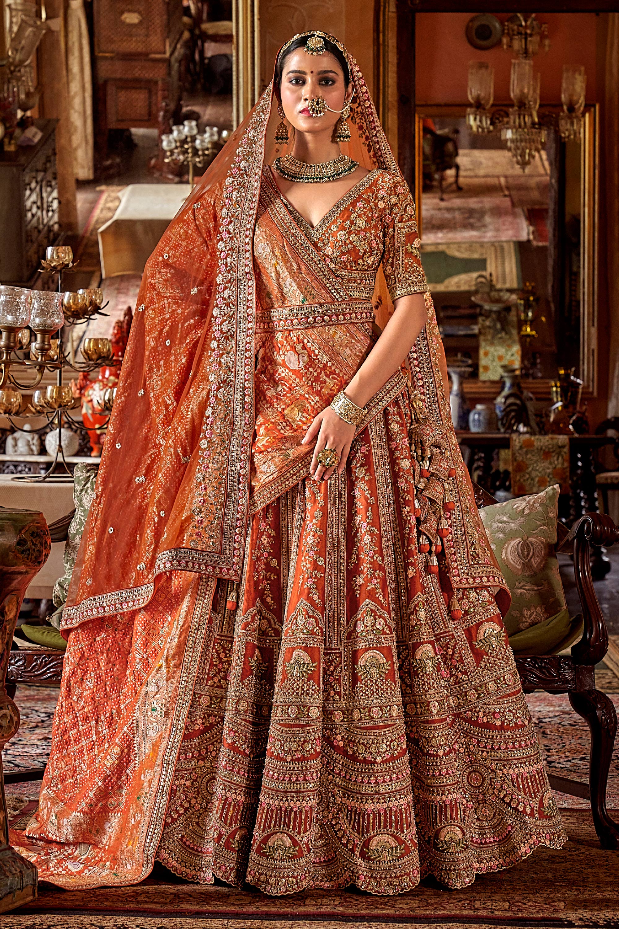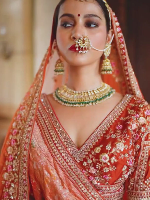 Rust Silk Heavy Embroidered Bridal Lehenga Choli