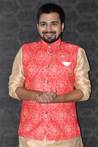 Sangeet Wear Readymade Lovely Cotton Fabric Men Red Color Jacket