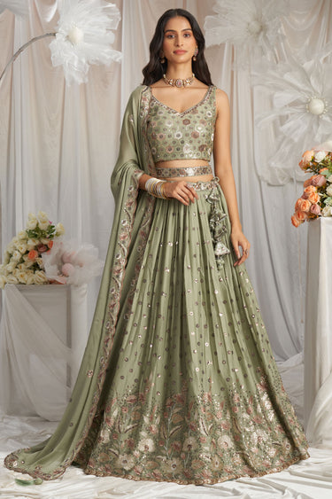 Scintillating Embroidered Poly Georgette Designer Lehenga Choli