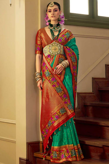 Sea Green Color Banarasi Silk Engaging Saree With Jacquard Touch
