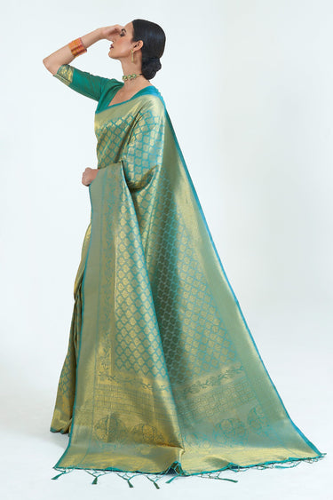 Sea Green Color Creative Pure Weaving Silk Saree With Handloom Pallu