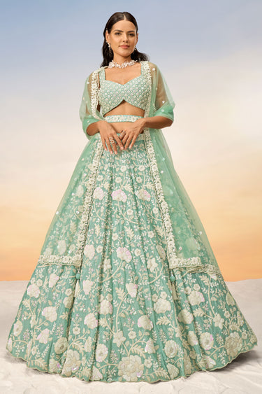 Sea Green Georgette Fabric Occasion Wear Sequins Work Lehenga Choli