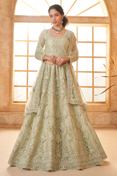Achieve a designer look with this elegant Lehenga Choli set in refined colors. Made from high-quality soft net fabric, the lehenga and blouse pair beautifully with a coordinating dupatta. Embellished with heavy designer thread embroidery and sparkling diamond work, this outfit is ideal for weddings. Can be customized up to size 42. Recommended for dry clean only.Note: Model accessories are not part of the product. Color may vary slightly due to photoshoot or display settings. Dispatches in 10 working days.