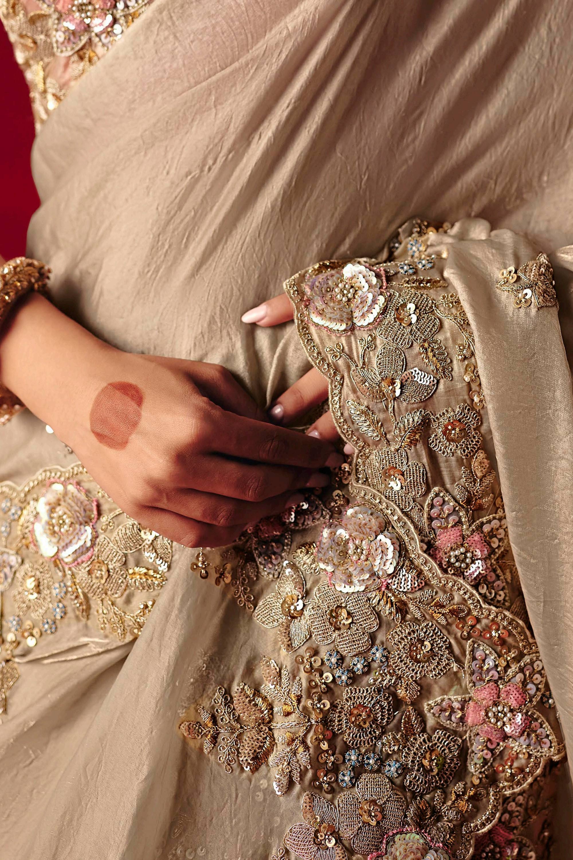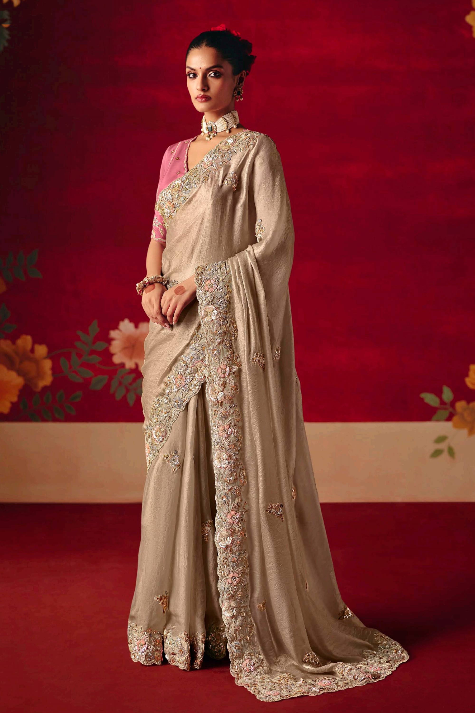 Sequins Embroidered Art Silk Beige Saree For Wedding Wear