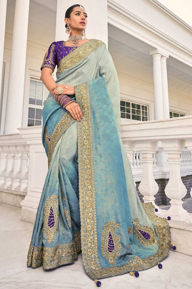 Sequins Zari Work Imposing Crepe Saree In Grey Color