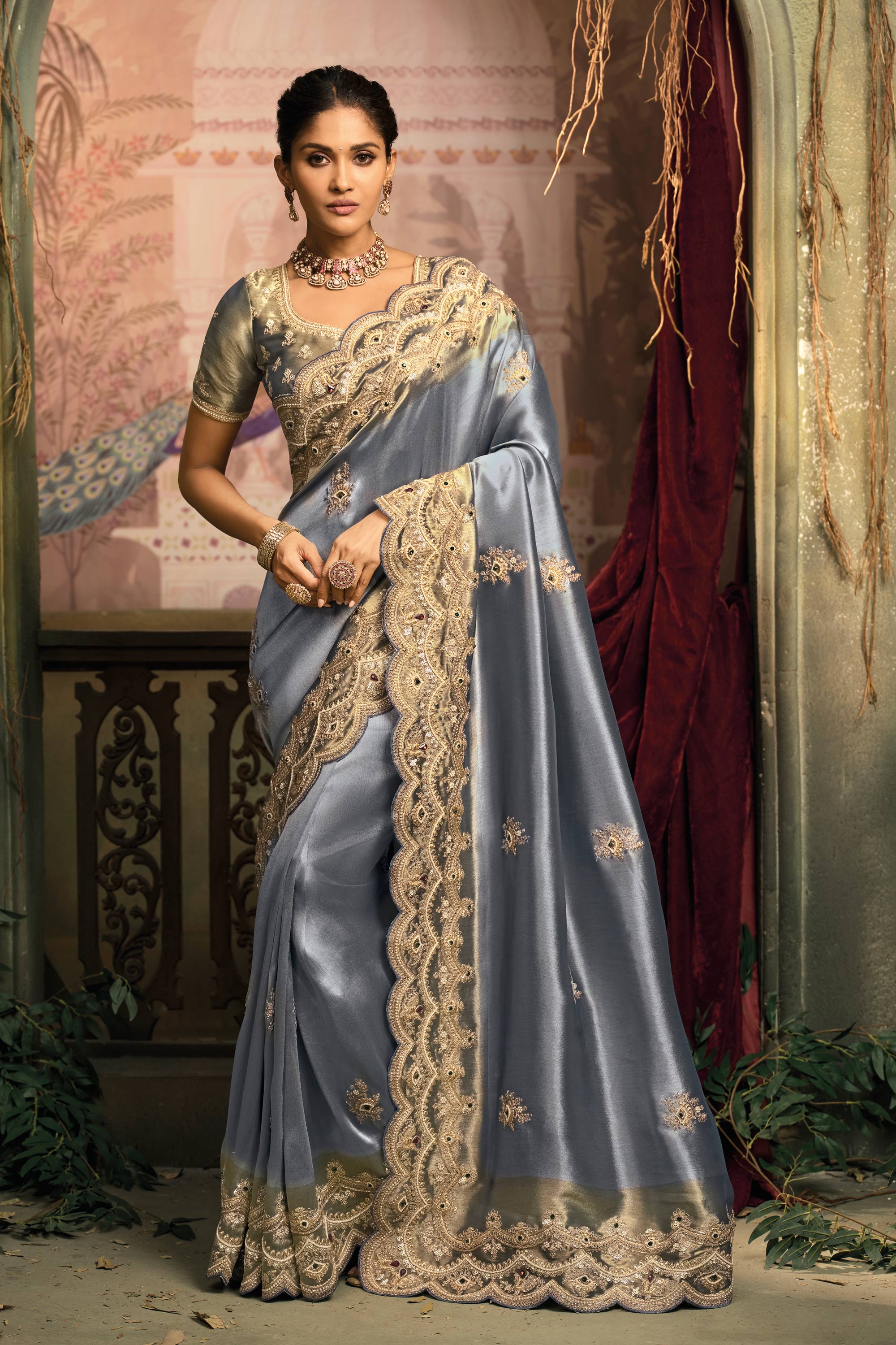 Crafted for grand occasions, this Traditional Silk Saree features a smooth silk texture and refined embroidery work. Its graceful drape and rich appearance make it a stunning choice for weddings and festive functions. Note: Due to digital photography, slight color variations may occur.
