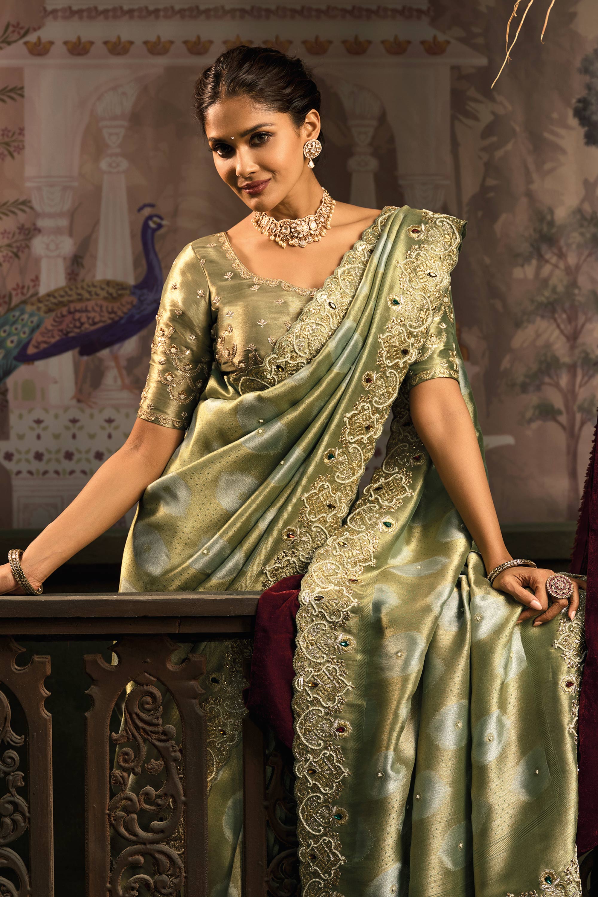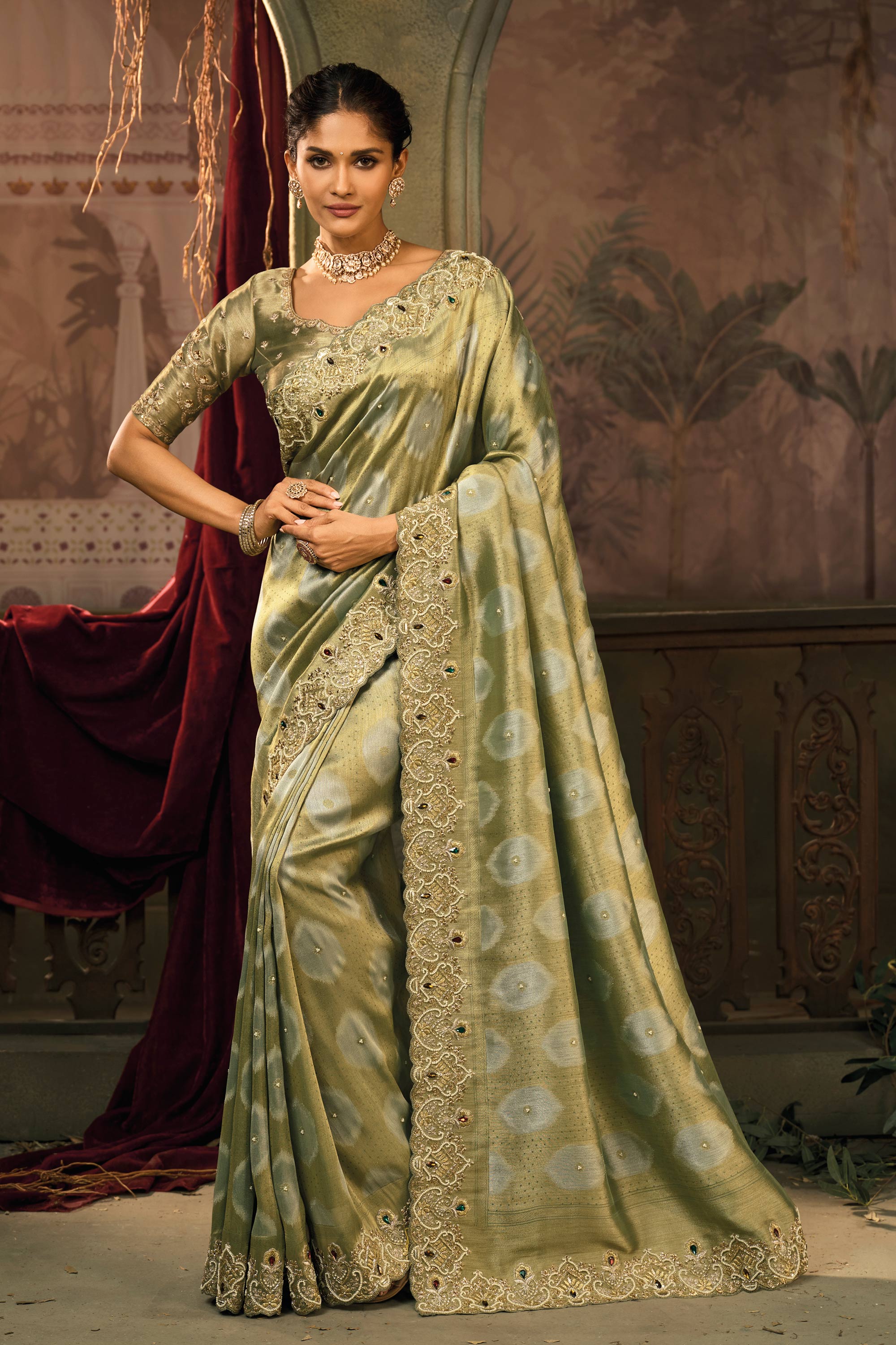 Silk Fabric Green Embroidered Wedding Wear Saree
