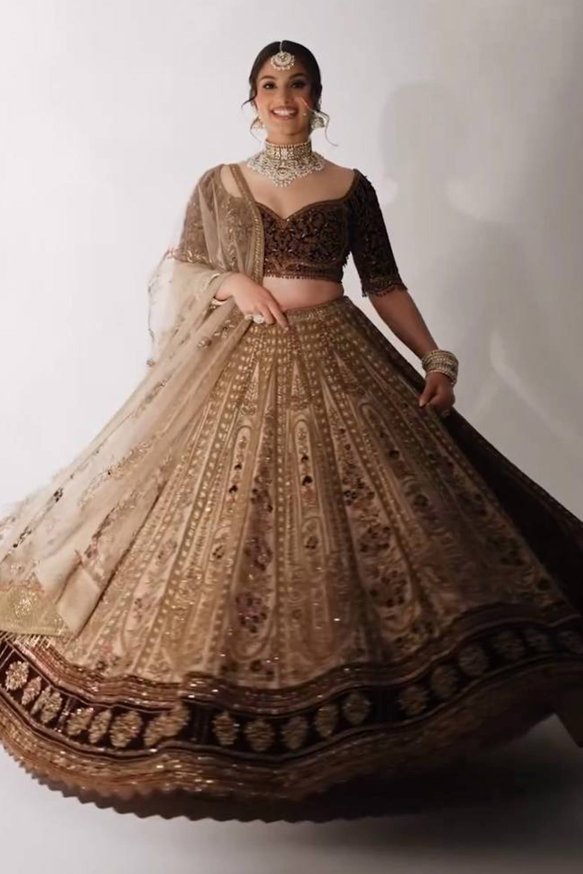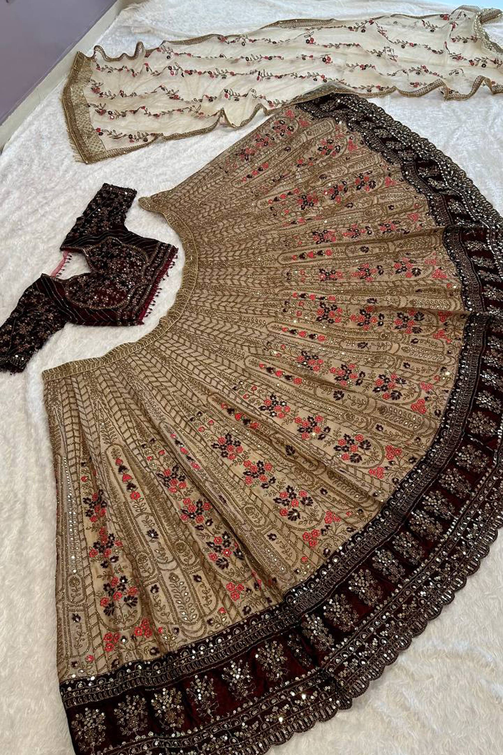 Silk Fabric Heavy Embroidered Beige Wedding Lehenga Choli With Dupatta