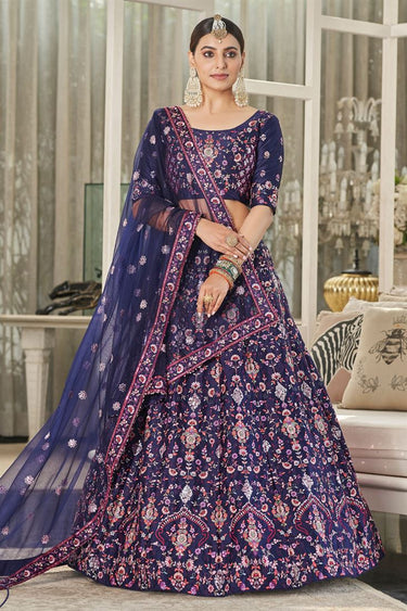 Silk Fabric Navy Blue Color Superior Wedding Wear Lehenga