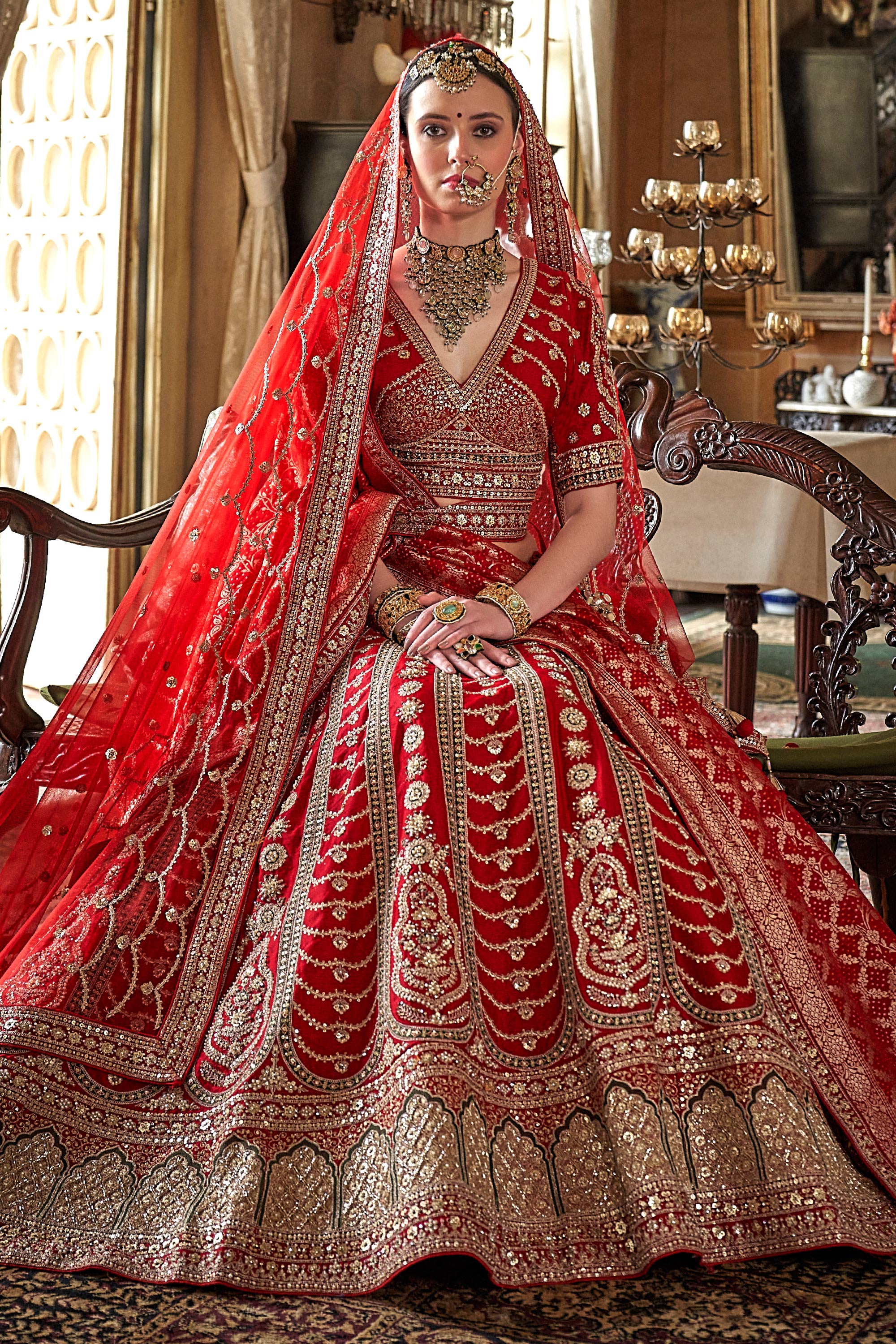 Upgrade your bridal wardrobe with this gorgeous Heavy Embroidered Designs Bridal Look Lehenga And Enigmatic Blouse. This exquisite ensemble is crafted to perfection, featuring intricate embroidery that exudes sophistication and charm. Perfect for weddings, receptions, or special events, the lehenga is designed with an eye for detail, ensuring a perfect blend of traditional artistry and modern style. The rich textures and striking patterns make this a standout outfit, offering unparalleled comfort and beauty. Complete your bridal look effortlessly with this must-have set, tailored for elegance and grace.