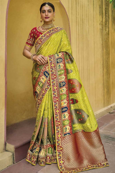 Silk Fabric Wedding Wear Beatific Saree In Green Color