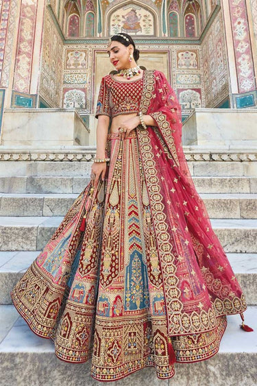 Silk Fabric Wonderful Bridal Look Lehenga In Maroon Color