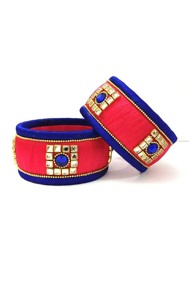 Silk Thread Blue And Red Color Handmade Customized Patla Set