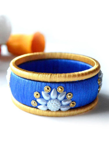 Silk Thread Handmade Customized Beige And Blue Bangle Set