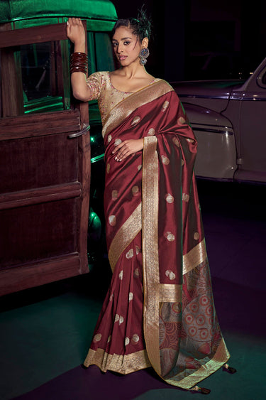 Discover elegance with our Festive Wear Silk Weaving Border Work Saree. This saree, crafted in a rich color, boasts intricate border work that complements its luxurious silk fabric. Ideal for festive occasions and celebrations, it ensures you stand out with timeless grace. Easy to drape and comfortable to wear, this saree blends traditional aesthetics with modern flair. Elevate your wardrobe with this beautiful piece that's perfect for special events.