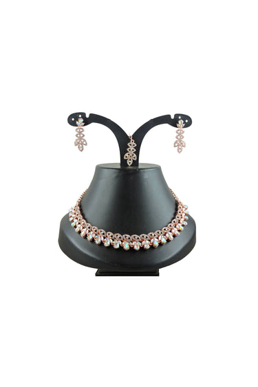 Discover an ensemble that completes your ethnic look with our Captivating Alloy Necklace. Accompanied by matching earrings and a beautiful mang tikka, this jewellery set is meticulously crafted with stunning detailing for an aesthetic appeal. It makes an ideal accessory for traditional occasions, enhancing your outfit with a dash of opulence. Indulge in the richness of Indian tradition, brought alive in this exquisitely designed alloy necklace set.