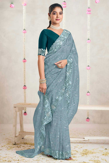 Sky Blue Color Sober Saree In Organza Silk Fabric