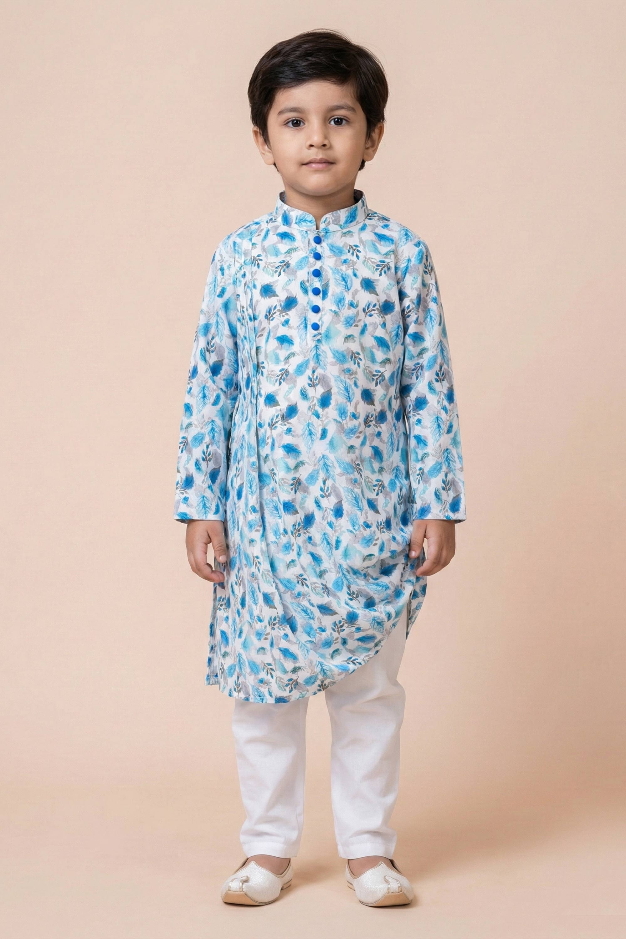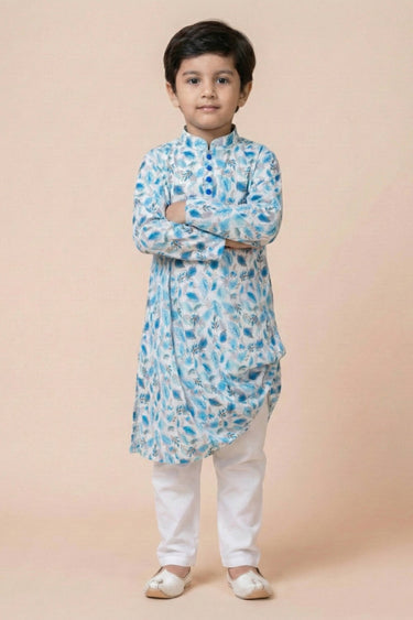 Sky Blue Festive Wear Cotton Readymade Kurta Pyjama For Boys