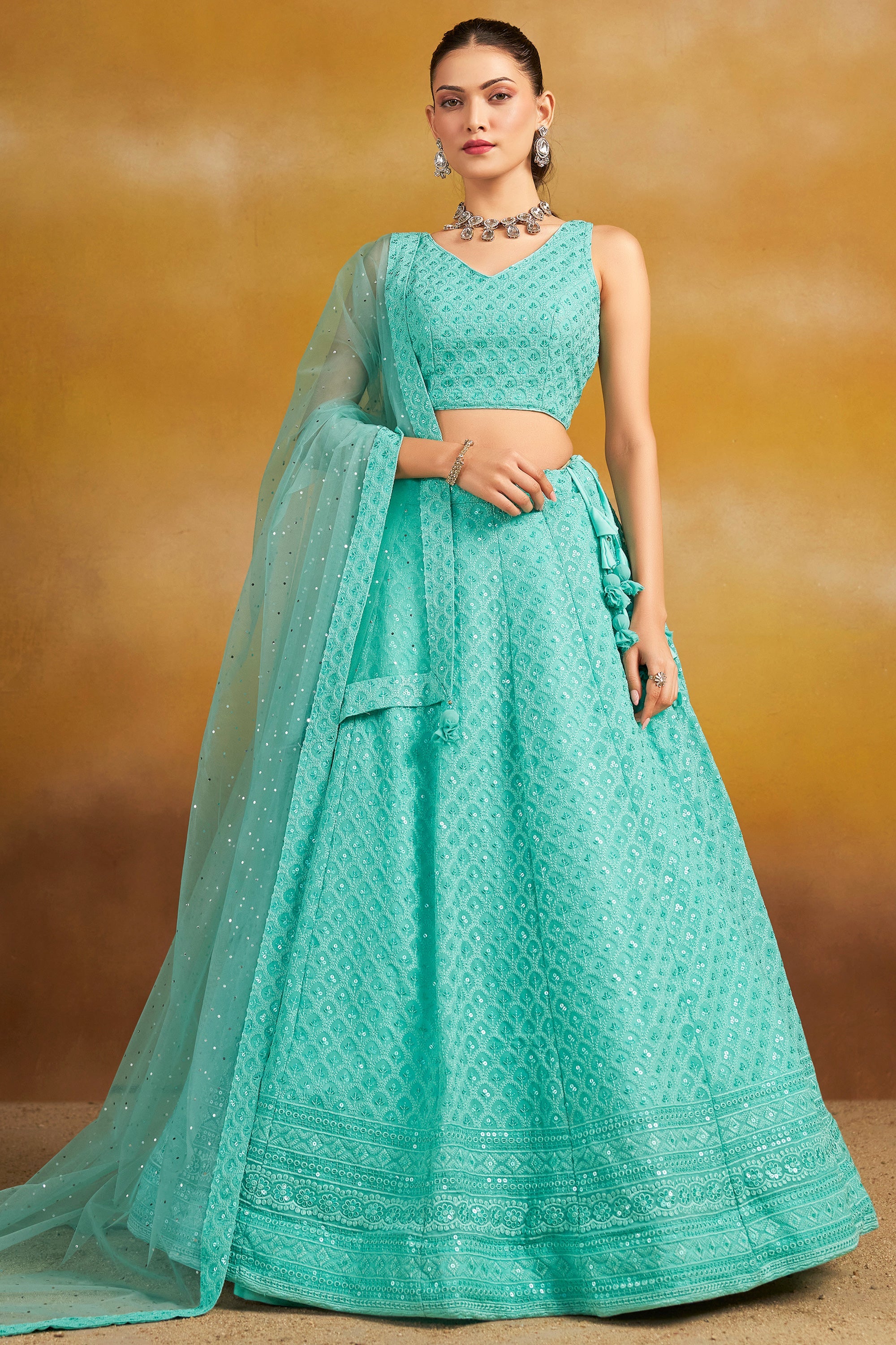 Sky Blue Georgette Lehenga Choli With Sequins Work