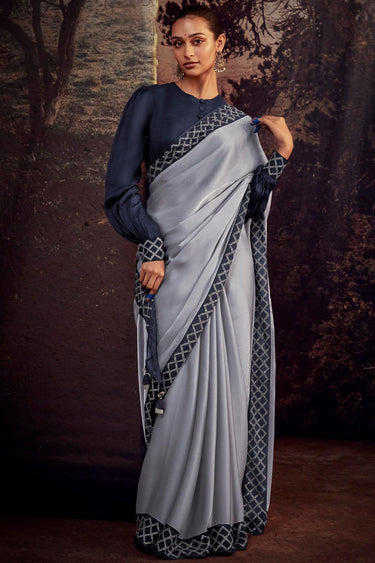 Smashing Grey Color Fancy Work Art Silk Fabric Saree