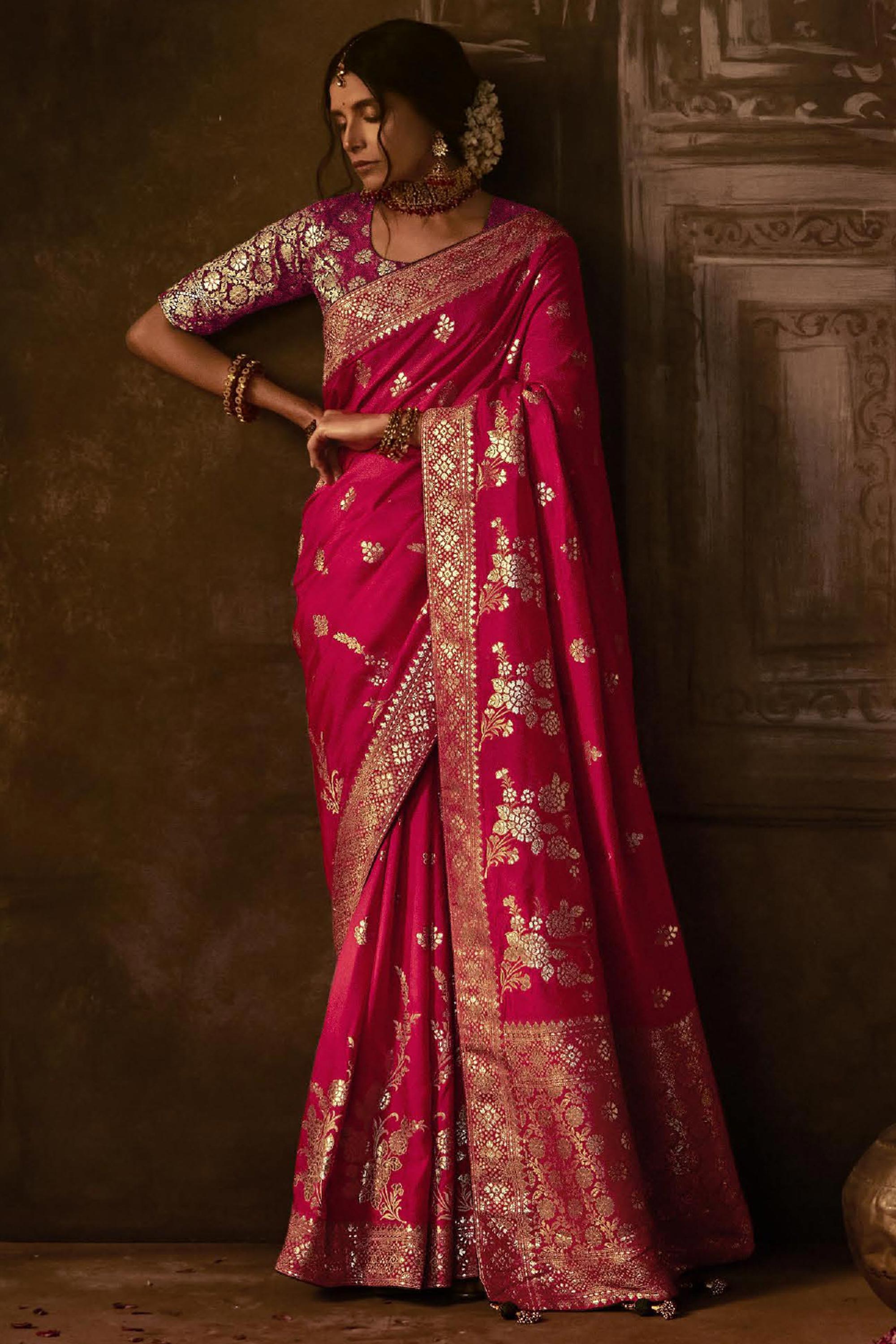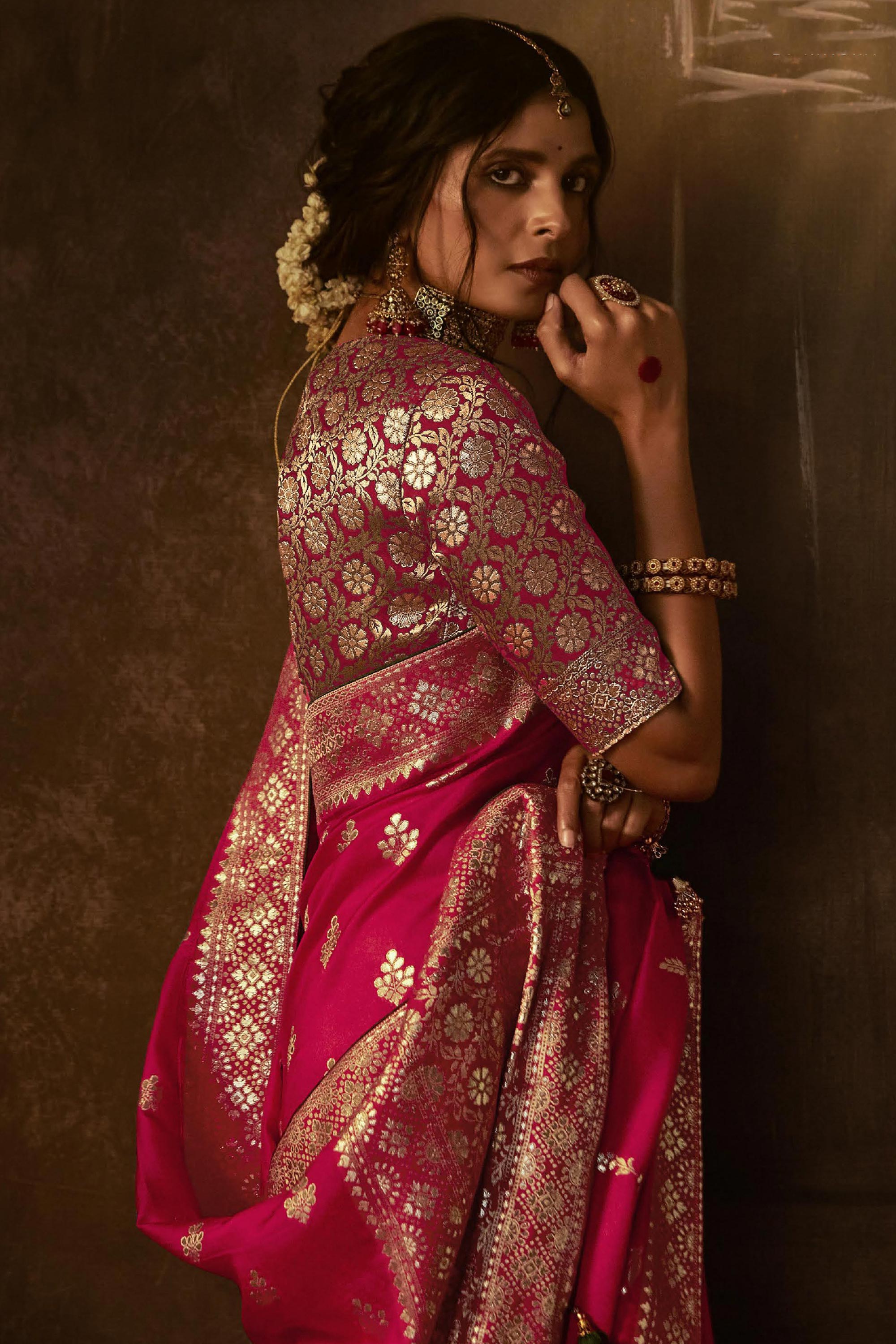Smashing Rani Color Weaving Work Art Silk Fabric Saree