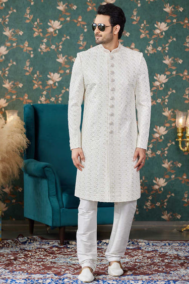 Splendiferous Cream Color Art Silk Fabric Sherwani For Men
