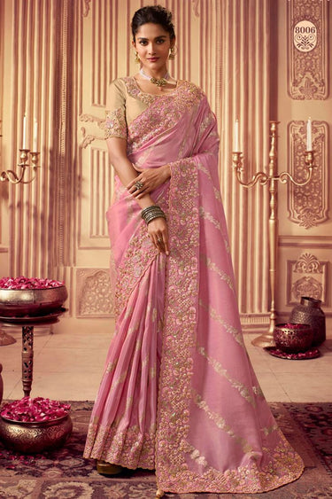 Sushrii Mishraa Pink Color Supreme Georgette Fabric Party Style Saree