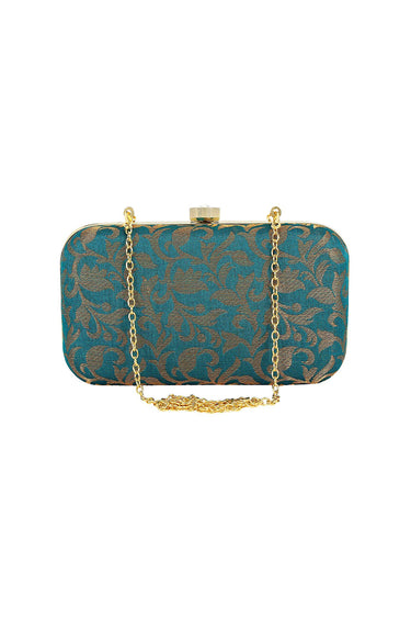 Teal Color Party Style Fancy Fabric Beatific Clutch Purses