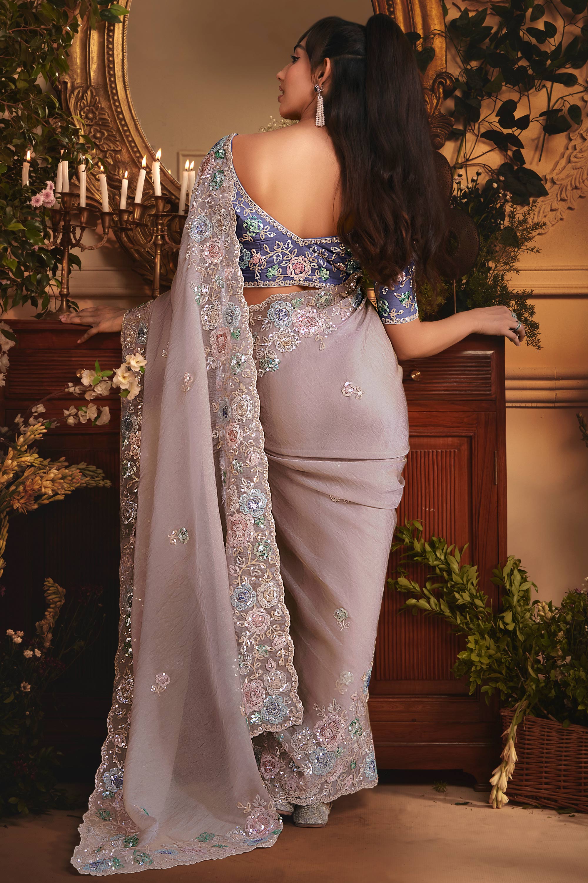 Tempting Organza Fabric Grey Color Saree With Border Work