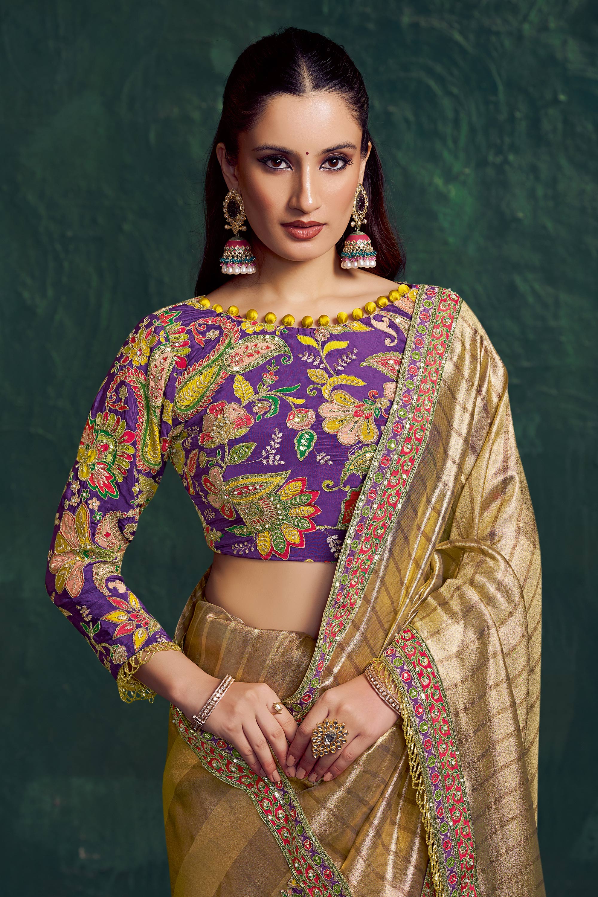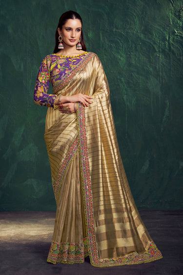 Tissue Beige Embroidered Border Work Saree For Wedding Wear