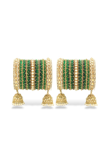 Traditional Green Color Bridal Jhumki Style Bangle Set For Two Hands In Alloy Material