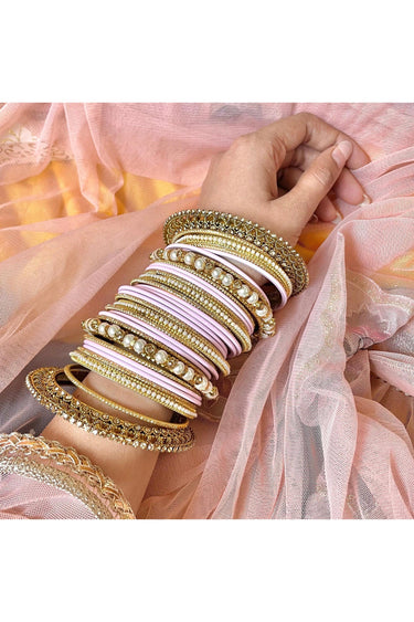 Traditional Pink Color Bridal Bangle Set With Pacheli Kada In Alloy Material