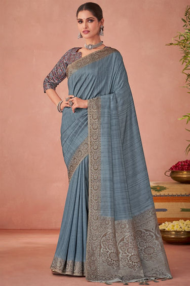 Vartika Singh Art Silk Fabric Grey Color Trendy Kalamkari Printed Saree