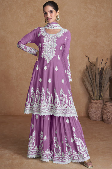 Vartika Singh Art Silk Fabric Lavender Color Glamorous Readymade Sharara Suit In Function Wear