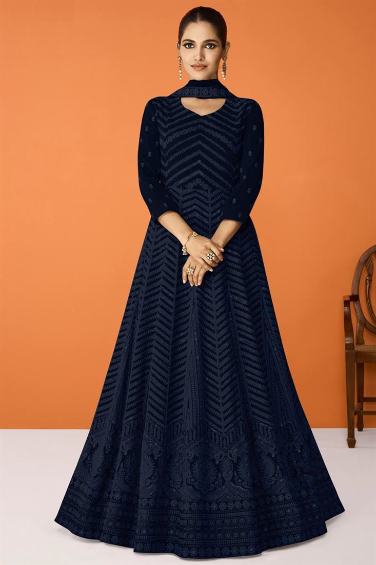 Vartika Singh Georgette Party Look Anarkali Suit in Navy Blue
