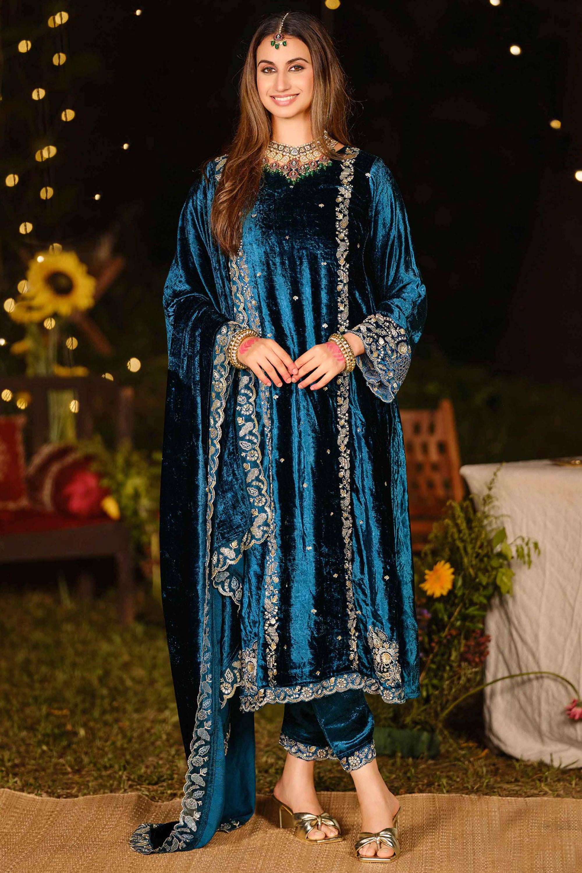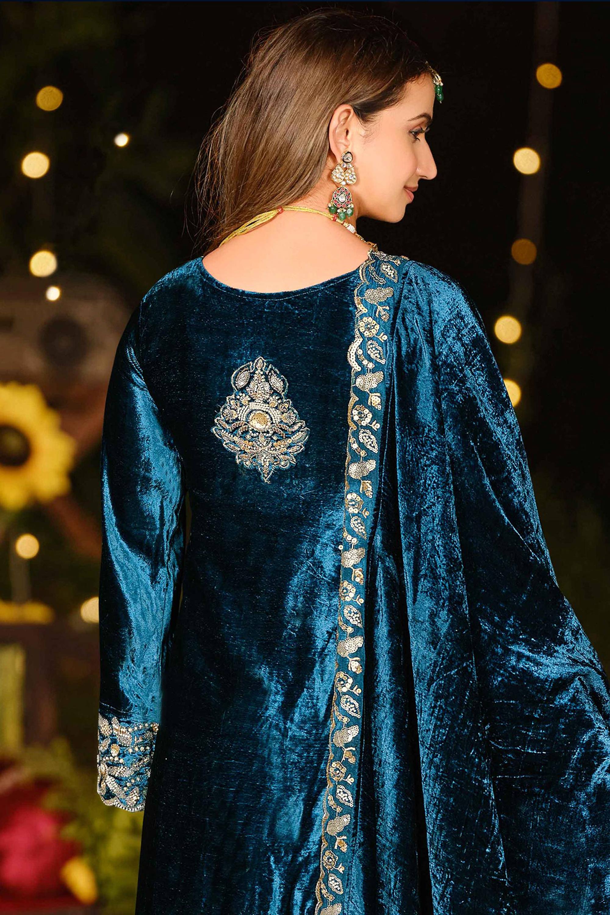 Velvet Function Wear Navy Blue Designer Salwar Suit