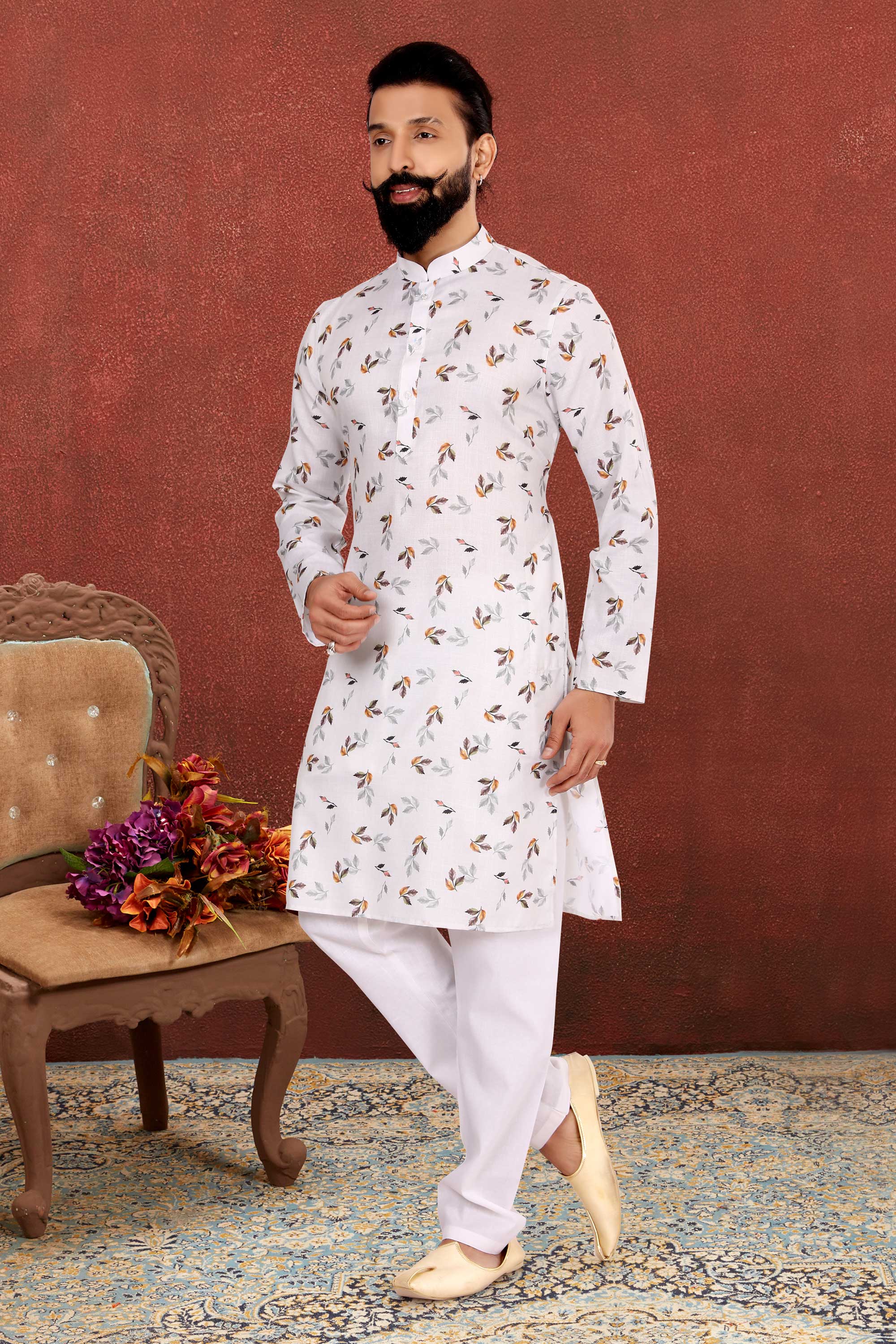 White Color Cotton Fabric Festive Wear Captivating Kurta Pyjama For Men
